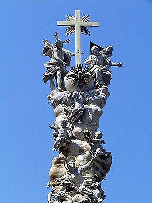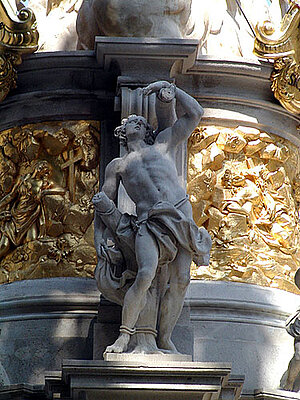 Giovanni Giuliani sorgte für den Skulpturenschmuck im Zuge der Barockisierung des Stiftes Heiligenkreuz. Neben Plastiken für Altäre schuf er für den Hof des Stiftes die Dreifaltigkeitssäule. In die Nischen des Sockels sind Heiligenfiguren eingestellt: der hl. Leopold als Gründer des Stiftes und Landespatron, der hl. Benedikt als Gründer des Benediktinerordens und der hl. Bernhard von Clairvaux als bedeutendster Mönch des Zisterzienserordens. Sie bilden gleichsam das Fundament. An den Ecken des oberen Sockelgeschoßes stehen die drei Pestheiligen: Rochus, Sebastian und Karl Borromäus. Zwischen ihnen befinden sich vergoldete Reliefs, die die hl. Rosalia in der Felsengrotte, die büßende Maria Magdalena und den reuigen Petrus zeigen. Darüber erhebt sich der dreiseitige Obelisk, von Wolkenbauschen umhüllt, von Putten und Cherubsköpfen belebt. Seine Bekrönung bildet die Gruppe der Dreifaltigkeit. Etwa auf halber Höhe wird Maria von Engeln emporgetragen; sie ist Fürbitterin für die Menschheit und Kämpferin gegen die Geisel der Pest.