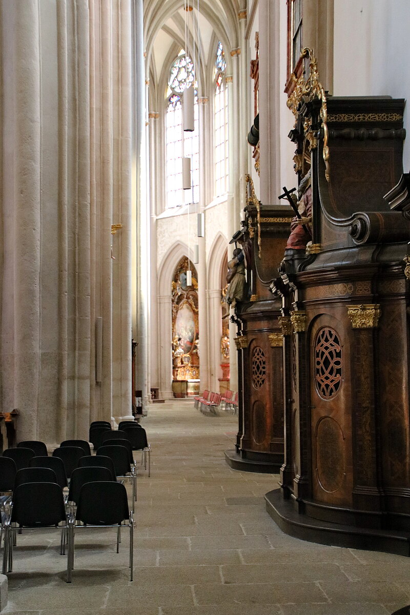 Der Kreuzgang ist eines der ersten Beispiele frühgotischer Architektur in Österreich, bei dem zahlreiche französische Einflüsse verarbeitet wurden. Durch die Verwendung verschiedenfarbiger Steinarten (Granit, Sandstein, Marmor) und durch eine äußerst abwechslungsreiche Modellierung wurde ein dekoratives und sehr lebhaft-plastisches Gliederungssystem geschaffen. Ab 1210 etwa beginnt der Bau des Nord- und Ostganges, während West- und Südgang wohl erst um 1230/40 vollendet werden konnten.