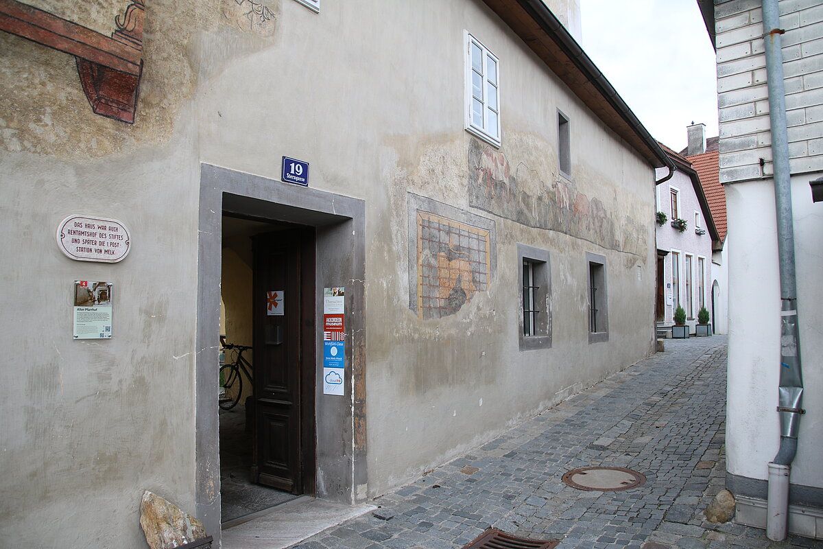 Die unterhalb des Stifts liegende Stadt stand immer in engster Verbindung zum Stift, das Grundherr und daher Obrigkeit war. 1227 erhielt Melk das Marktrecht, seit dem 15. Jahrhundert wurden zwei Jahrmärkte abgehalten. Im Spätmittelalter wurde der Ort befestigt. Die Mauer wurde 1586 zu einem Ring mit Türmen und Toren ausgebaut, die Tore aber zwischen 1852 und 1895 abgetragen. Unter dem Einfluss der Reformation strebten die Bürger im 16. Jahrhundert nach größerer Unabhängigkeit vom Stift. Von ihrem Selbstbewusstsein zeugen die Marktrichterstube und das Rathaus. 1619 kämpften sie, inzwischen wieder katholisch geworden, gegen die Truppen der evangelischen Stände. Als Poststation sowie als Bahnstation der Westbahn erlebte der Markt seit Ende des 18. Jahrhunderts bedeutenden Aufschwung und wurde am 29. September 1898 mit kaiserlicher Entschließung zur Stadt erhoben. Josef Edler von Fürnberg ließ 1792 das Posthaus erbauen - es gilt als das schönste Österreichs. Die KZ-Gedenkstätte erinnert an das im Zweiten Weltkrieg für 15.000 Häftlinge errichtete Nebenlager des Konzentrationslagers Mauthausen.