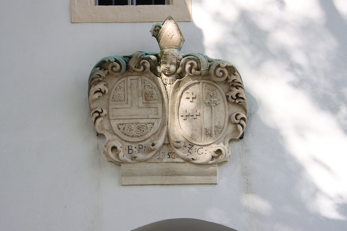 Reinprechtspölla, Pfarrkirche hl. Pankraz, Wappen Propst Berthold und Wappen Klosterneuburg
